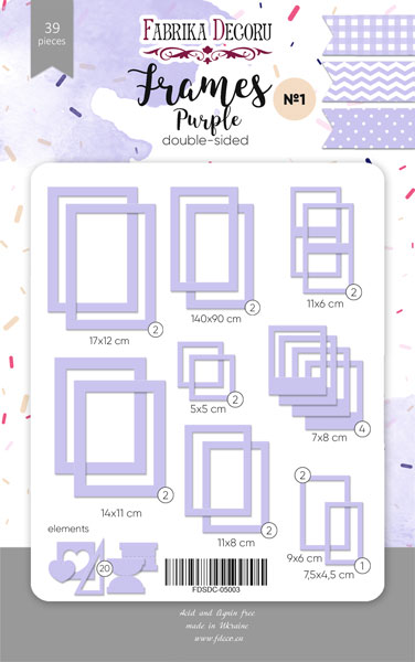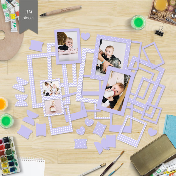 39 штук. Набор декоративных двусторонних бумажных высечек в виде фоторамок и элементов для украшений фотоальбомов, блокнотов и других творческих работ.¶¶Рамки разработаны как для стандартных размеров фотографий и для инста-фото 10см x 15см, 9см x 13см, так и других нестандартных проектов. Одна сторона рамок однотонная, а на обратной стороне изображены универсальные дизайны узоров: горошек, шеврон и клетка.