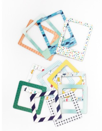 В наборе 12 элементов.Размер: 75х100 мм - 4 шт., 75х75 мм - 8 шт. 1 рамочка в наборе с чёрным фольгированием.
