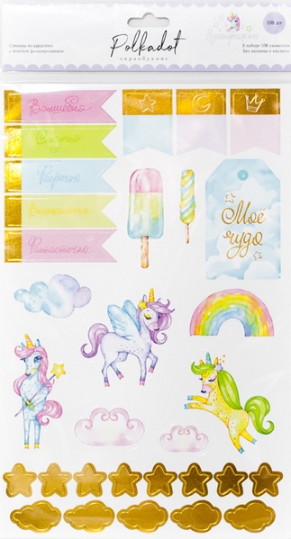 Стикеры из кардстока с золотым фольгированием Polkadot "Единорожка"