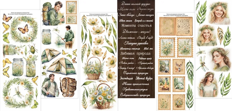 в наборе 12 двусторонних листов (по два каждого листа, включая обложку) + БОНУС ( 6 листов для вырезания 8*21см - 3 вида по 2 каждого); размер бумаги для скрапбукинга 21×29,7 см; плотность бумаги 190 гр/м2;