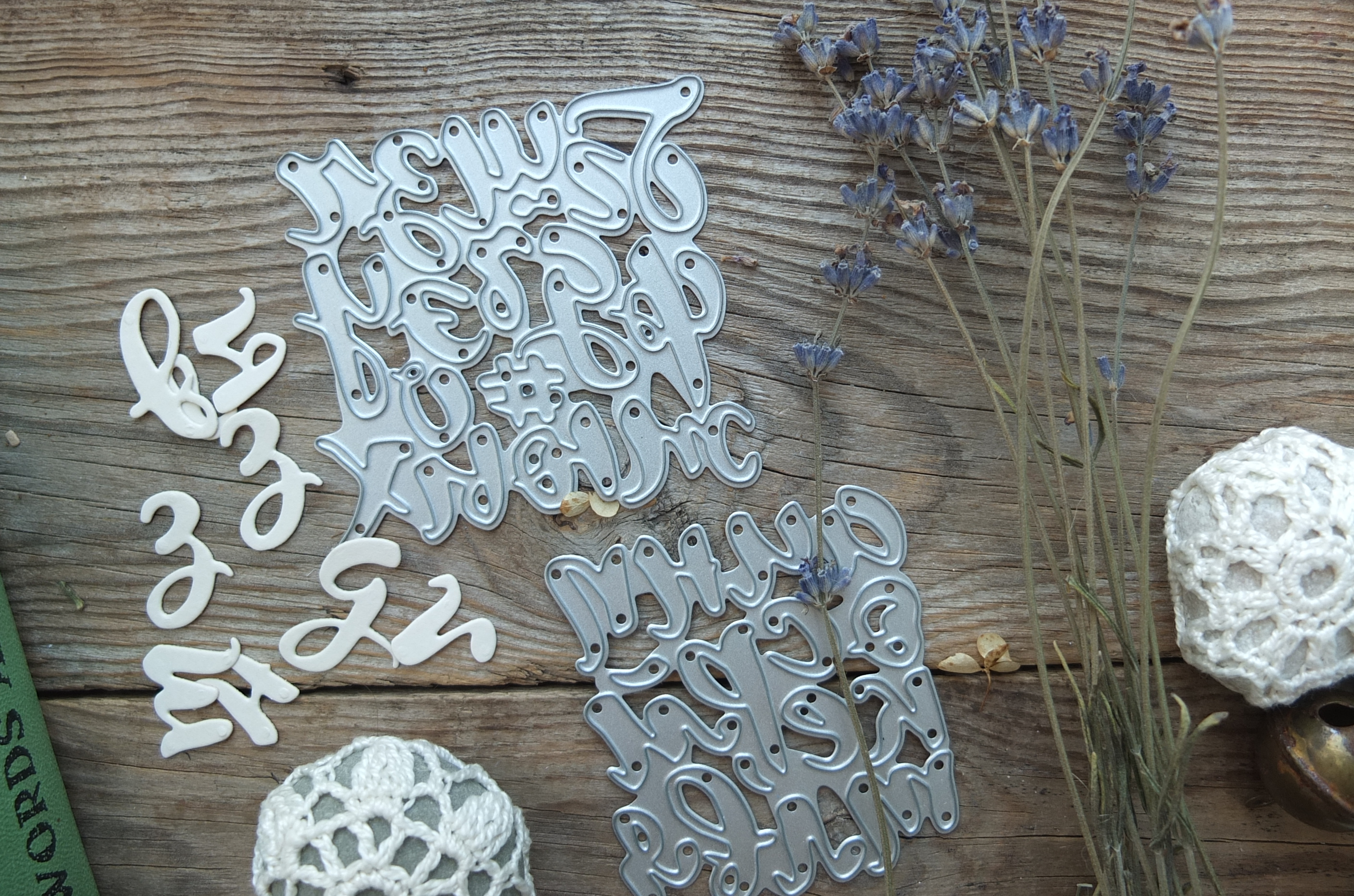 Размер каждой буквы около 1,5см.Изготовлен из углеродистой стали повышенной прочности. Подходит для различных типов вырубных станков. Предназначен для использования с бумагой, кардстоком, фетром, тканью, пробкой. Для наилучшего качества вырубки рекомендуется использовать с дополнительной металлической пластиной (продается отдельно в качестве аксессуара к вырубным машинкам).