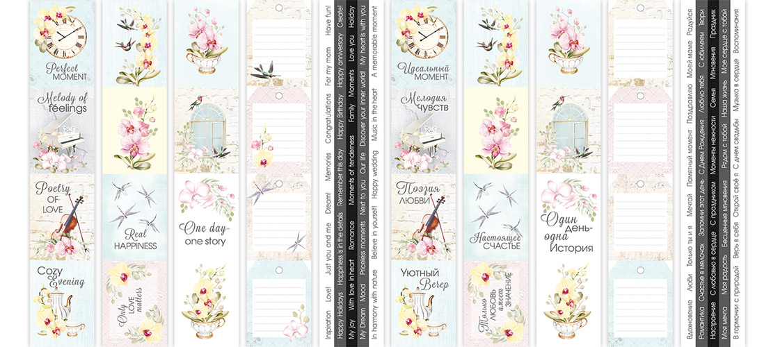 Набор двухсторонней бумаги 30,5 см х 30,5 см (12"x12"), В наборе 10 листов + БОНУС - лист для вырезания и набор карточек на русском и английском языке. Плотность 200г/м.