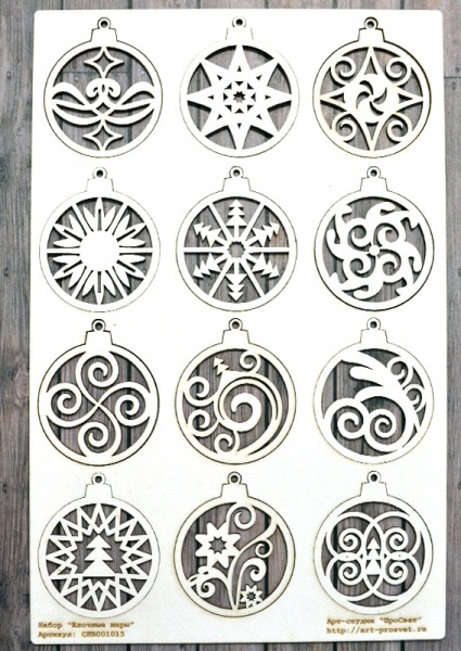Чипборд выполнен из пивного картона белого цвета толщиной 1,15 мм. Набор елочных шаров, 12 элементов, Диаметр элементов: 40 мм
