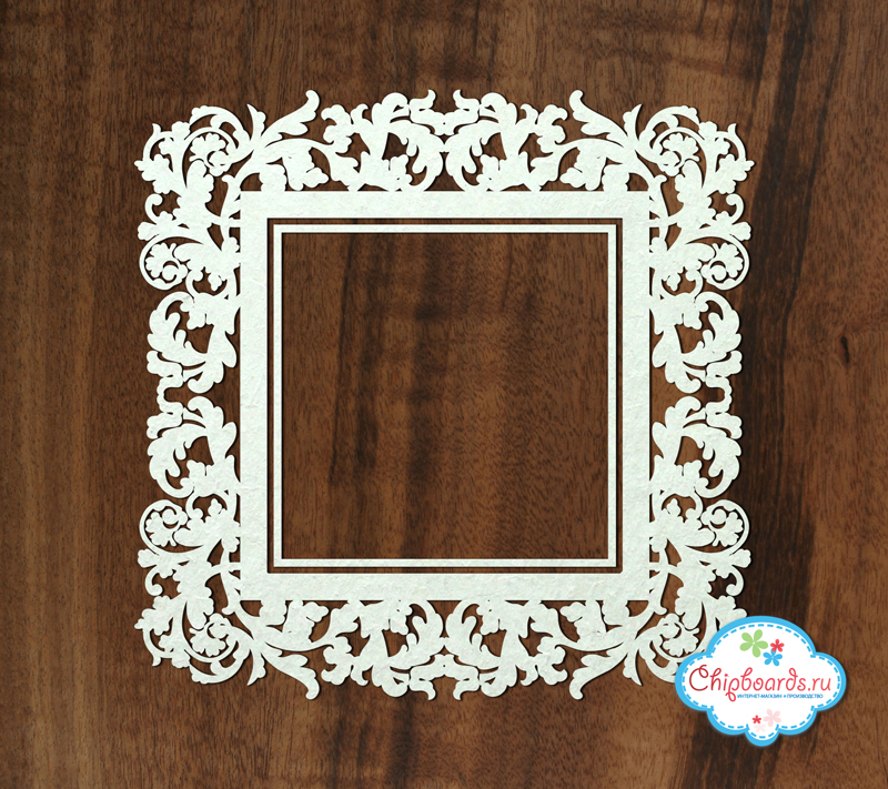 Размер 11 Х 11 см., внутри 6 Х 6 см. Чипборд выполнен из пивного картона толщиной 0.9 - 1.15 мм.