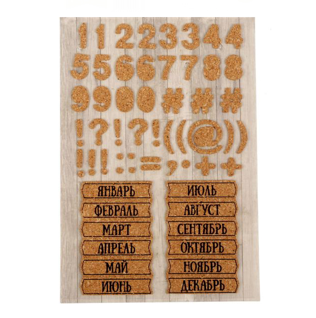 Набор наклеек. Выполнены из настоящего пробкового материала. Отличное решение для ведения Project Life. Размер упаковки 11х15см. Высота цифр около 1,3см. Размер флажка с названием месяца 1*4см. Наклейки прекрасно подойдут для скрап-работ, придадут объём, расставят нужные акценты. Могут быть использованы в качестве украшения подарков, открыток, рамочек и предметов интерьера.