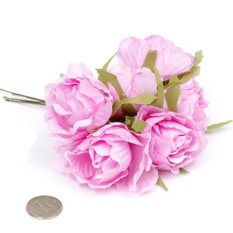 Букет тканевых полуоткрытых роз 4 см "Розовый", в упаковке