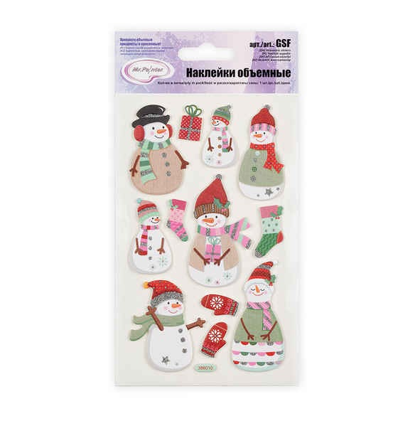 Наклейки объёмные MrPainter "Снеговики"