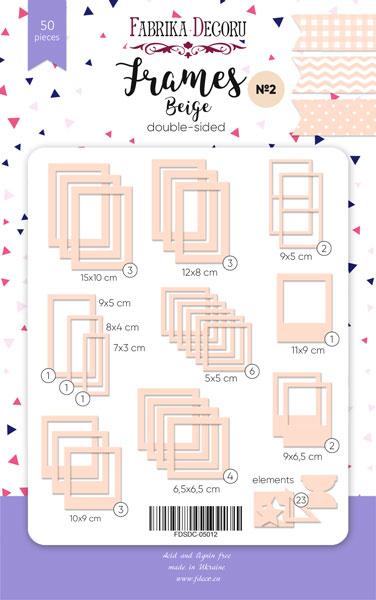 39 штук. Набор декоративных двусторонних бумажных высечек в виде фоторамок и элементов для украшений фотоальбомов, блокнотов и других творческих работ.¶¶Рамки разработаны как для стандартных размеров фотографий и для инста-фото 10см x 15см, 9см x 13см, так и других нестандартных проектов. Одна сторона рамок однотонная, а на обратной стороне изображены универсальные дизайны узоров: горошек, шеврон и клетка.