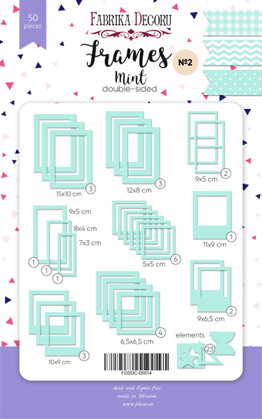 39 штук. Набор декоративных двусторонних бумажных высечек в виде фоторамок и элементов для украшений фотоальбомов, блокнотов и других творческих работ.¶¶Рамки разработаны как для стандартных размеров фотографий и для инста-фото 10см x 15см, 9см x 13см, так и других нестандартных проектов. Одна сторона рамок однотонная, а на обратной стороне изображены универсальные дизайны узоров: горошек, шеврон и клетка.