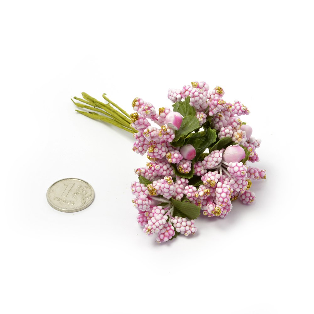 Букет с ягодками и тычинками, цвет розовый с блёстками