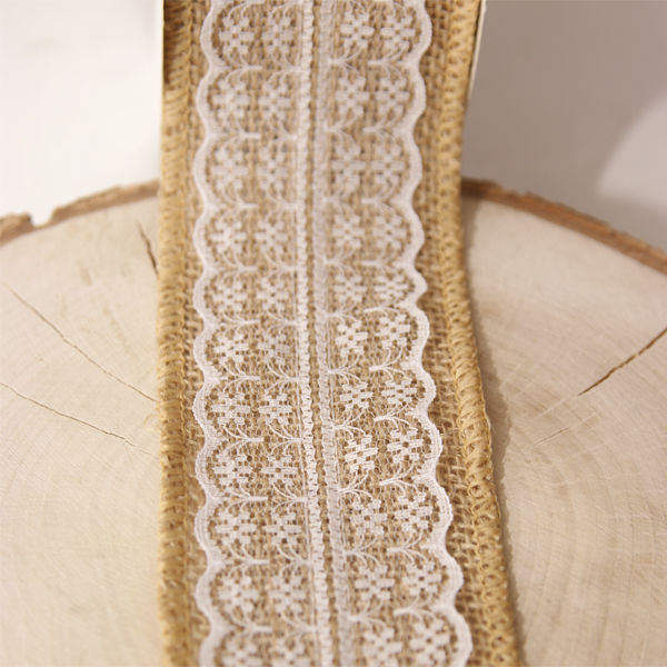Лента джутовая с кружевом по центру 60 мм