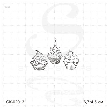 Штамп Stylish Stamps "Три кексика контурные большие"