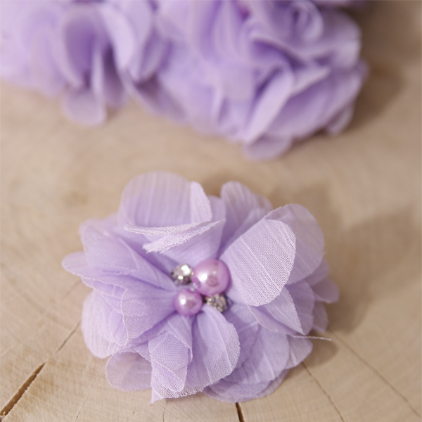 Шифоновый цветок с сердцевинкой из бусинок и страз. Цена за 1 штуку. Фетровая подложка для удобства приклеивания
