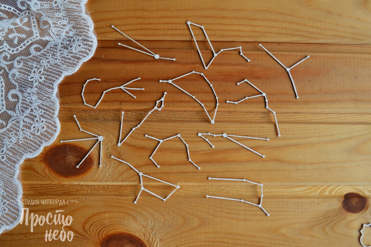 Набор состоит из 12 элементов. Выполнен из картона кремового цвета толщиной около 1,55мм. Можно использовать как самостоятельный декор, а аткже раскрашивать любыми красящими составами: спреями, красками или чернильными подушечками.