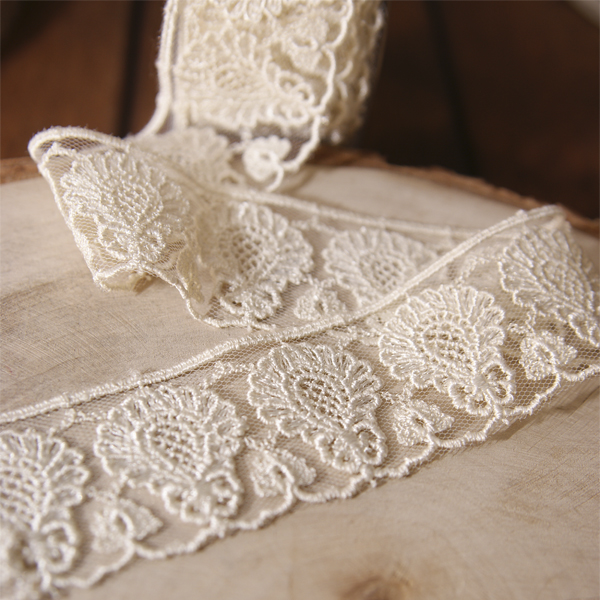 Кружево на сетке 3,5 см "Хвост павлина", цвет кремовый