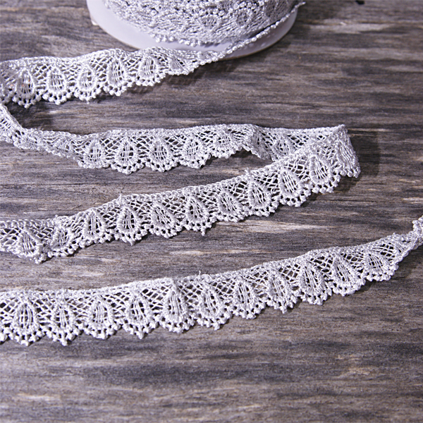 Кружево гипюрное 2 см "Орнамент-капелька", цвет серый