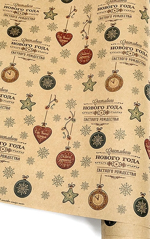 Бумага упаковочная крафт 100 х70 см "Новогодние поздравления"