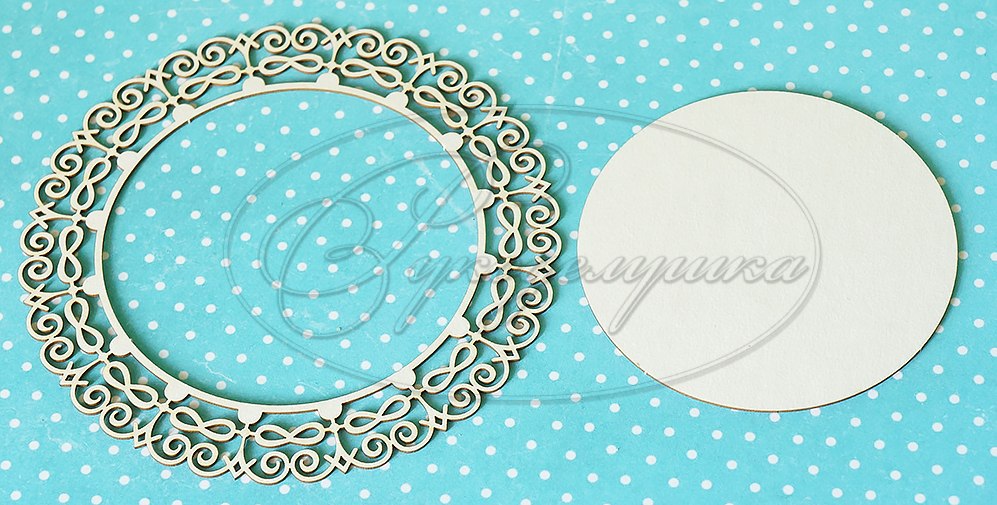 внешний диаметр 10 см, внутренний 7 см. Используется в качестве украшения для скрапбукинга . Применяется в любых работах. Возможно окрашивание акрилом, акварелью, спреями или любыми другими красящими составами.