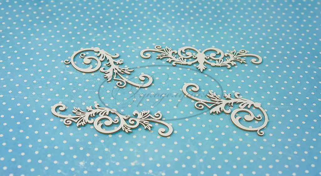 Размер самого большого завитка 85х25 мм. Используется в качестве украшения для скрапбукинга . Применяется в любых работах. Возможно окрашивание акрилом, акварелью, спреями или любыми другими красящими составами.