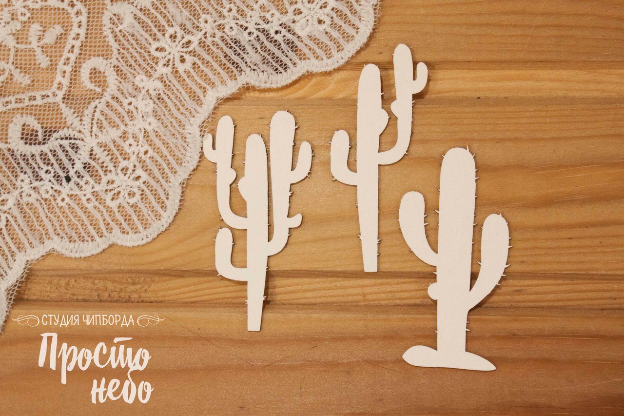 В наборе 4 кактуса. Размер одного примерно 32*71 мм. Выполнен из картона кремового цвета толщиной около 1,55мм.