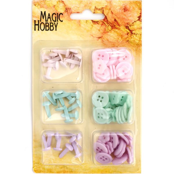 Набор декора "Брадс + пуговки", розовый, мятный, сиреневый