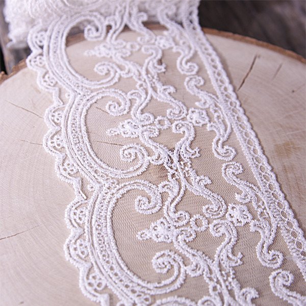 Кружево на сетке 9,5 см "Орнамент", молочный белый