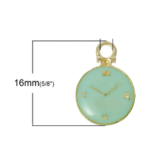 Подвеска металлическая "Часики", цвет мятный с золотом (232)