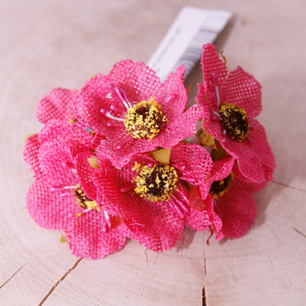 Букет цветов из джутовой ткани, цвет ярко-розовый