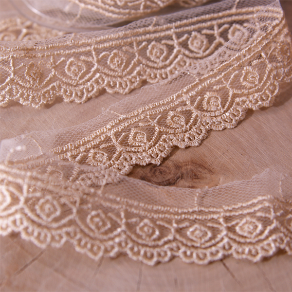 Кружево на сетке 12 мм, цвет светлый беж