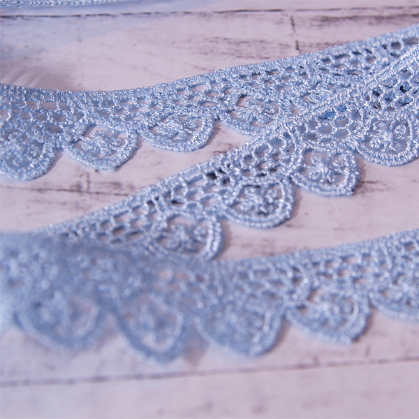 Кружево гипюрное 1,8 см "Фестон с цветочком", цвет голубой