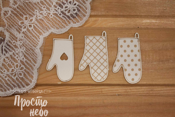 размер одной прихватки 28*48 мм. Выполнен из картона кремового цвета толщиной около 1,55мм. Можно использовать как самостоятельный декор, а аткже раскрашивать любыми красящими составами: спреями, красками или чернильными подушечками.