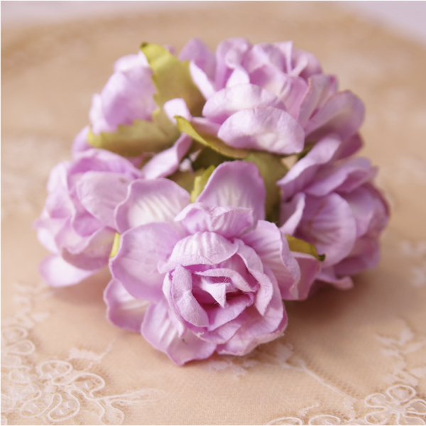 Букет роз 4 см с тисненёнными лепестками, цвет бело-сиреневый