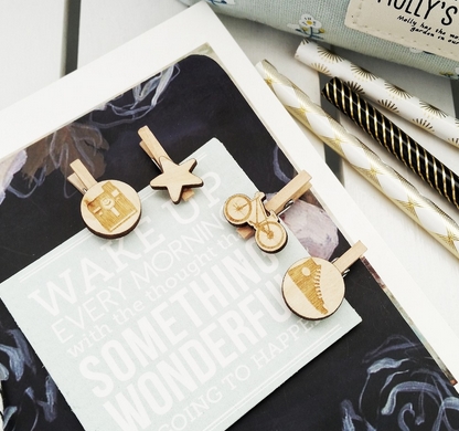 В наборе 4 шт. Длина каждой прищепки 2.5 см. Набор деревянных прищепок с гравировкой. Материал: фанера 3 мм. Подходит для украшения открыток, альбомов, блокнотов. Можно затонировать в любой цвет.