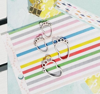 Размер каждого большого следа 3 х 4 см. Размер каждого следа поменьше 2 х 3 см. Чипборд из картона толщиной 1.5 мм. Вырезан методом лазерной резки, поэтому возможны характерные следы. Клеится с помощью клея или горячего пистолета.