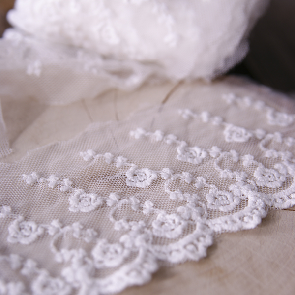 Кружево на сетке "Розы", ширина 8 см, цвет белый