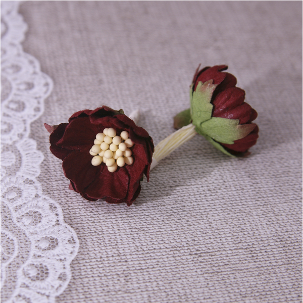 Бумажные цветы шиповника, диаметр околол 3 см, высота около 1.5 см, длина стебля около 2.5 см