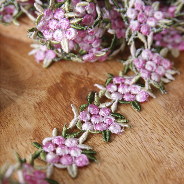 Кружево гипюрное 3 см "Виноград", цвет розовый с зелёным