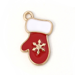 Подвеска металлическая "Рукавичка со снежинкой", цвет красный (777)