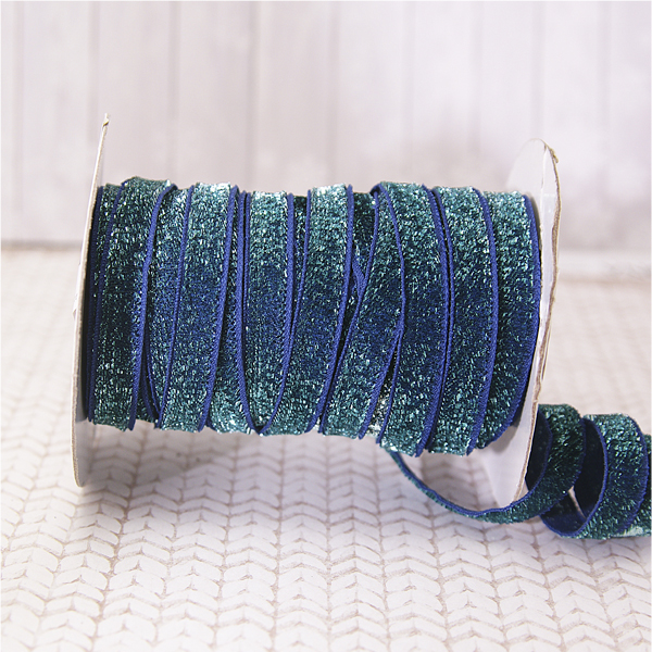Тесьма с блёстками 11 мм, цвет бирюза на синем