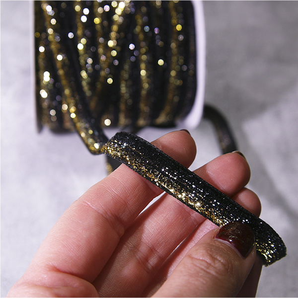 Тесьма с блёстками 10 мм, цвет золото с чёрным
