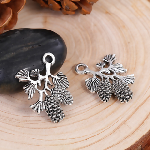 Подвеска металлическая "Ветка с шишками", цвет серебряный (806)
