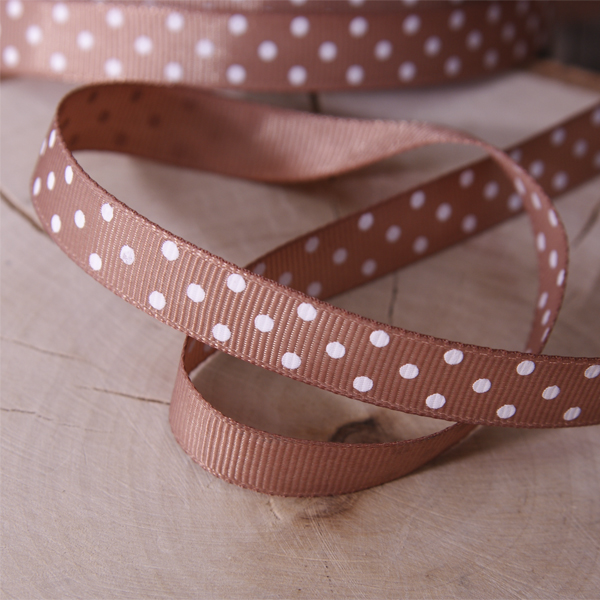Лента репсовая 12 мм "Горошек", цвет бежевый