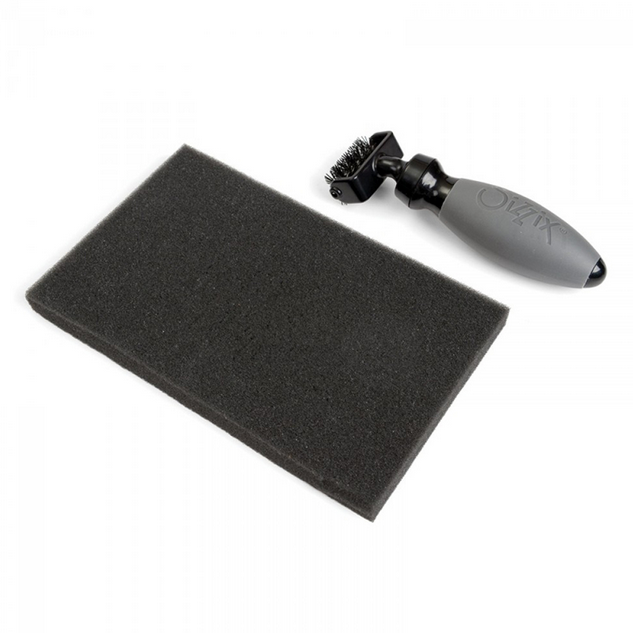 Набор для очистки ножей для вырубки DIE BRUSH включает в себя сам инструмент для очистки, а также коврик для удобства работы. Инструмент позволяет не только легко и быстро удалить мелкие ажурные детали, которые могут застрять в ноже для вырубки, но и освободить самы вырубку из ножа, при этом не повредив ее. Простота работы с этим инструментом заключается в его особом устройстве: специальный ролик-щетка, а также удобная эргономичная ручка, не позволяющая ножу скользить в руке. Кроме самого инструмента в набор входит специальный коврик из паралона, позволяющий работать с инструментом для очистки на любой рабочей поверхности.