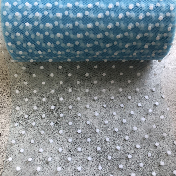 Тюль-сетка 15 см, цвет голубой в белый горошек