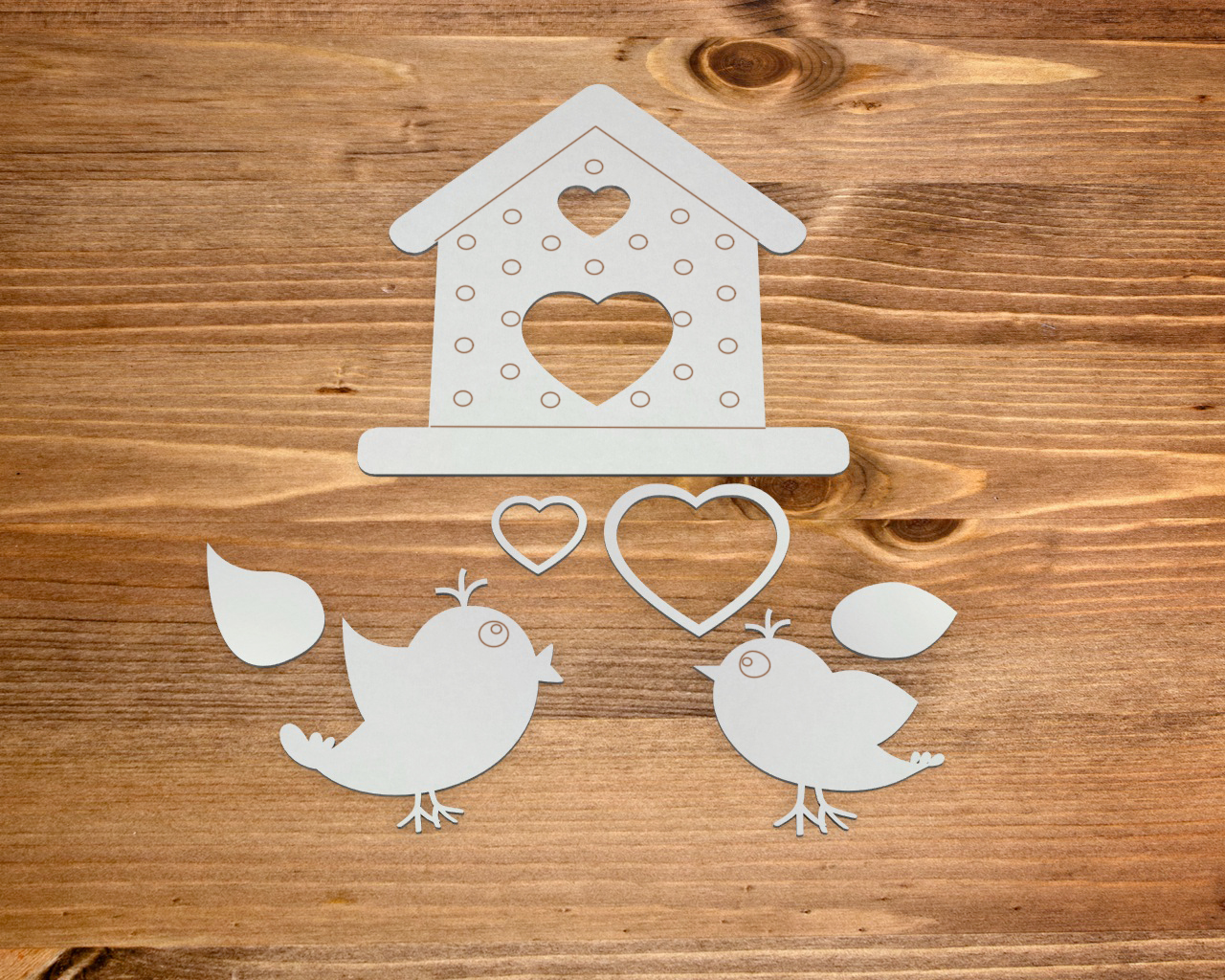 Скворечник 5.5 Х 5.5 см. Птички 3 Х 3 см Чипборд выполнен из материала толщиной 0.9 - 1.15 мм.