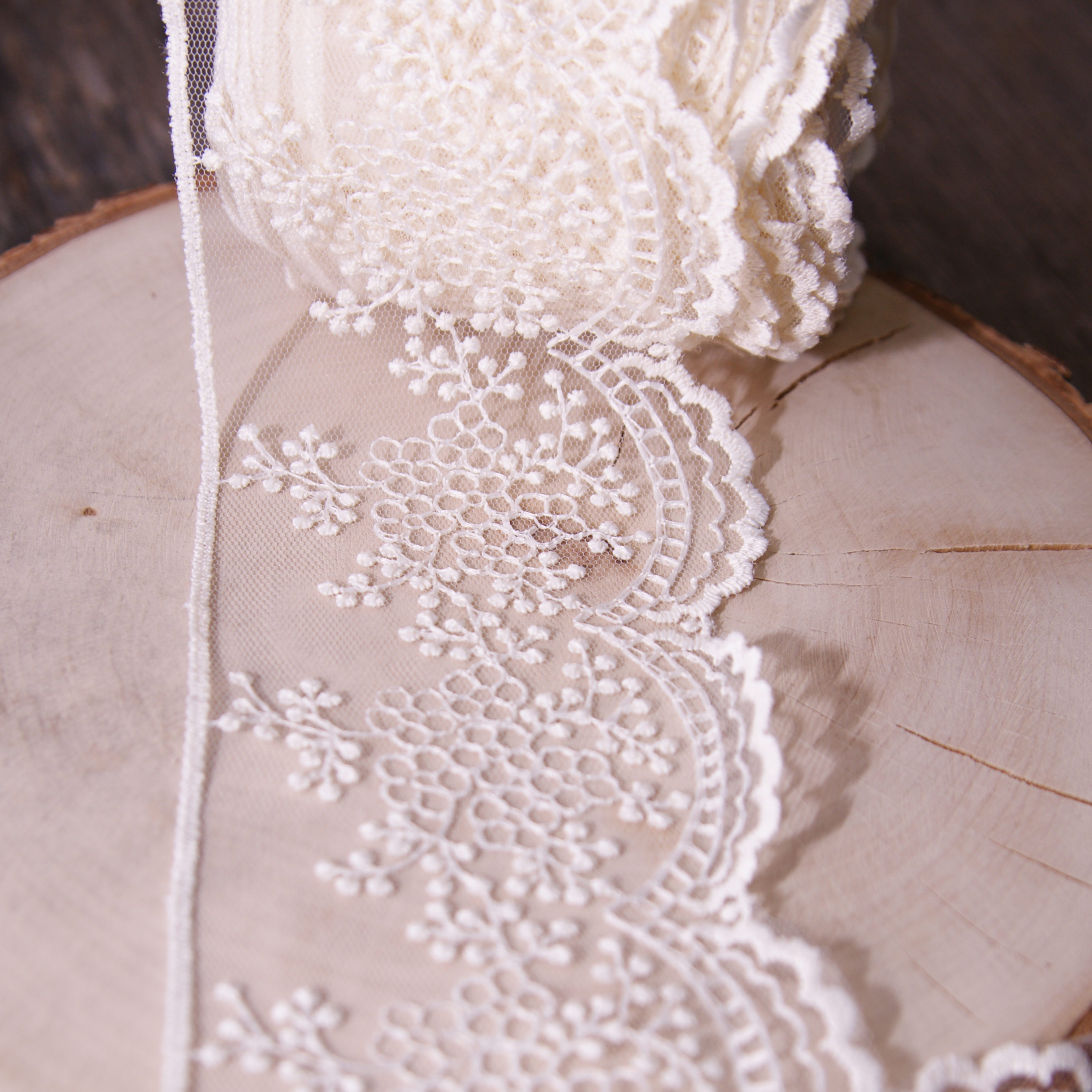 Кружево на сетке 8 см "Цветочки с ягодками", цвет кремовый