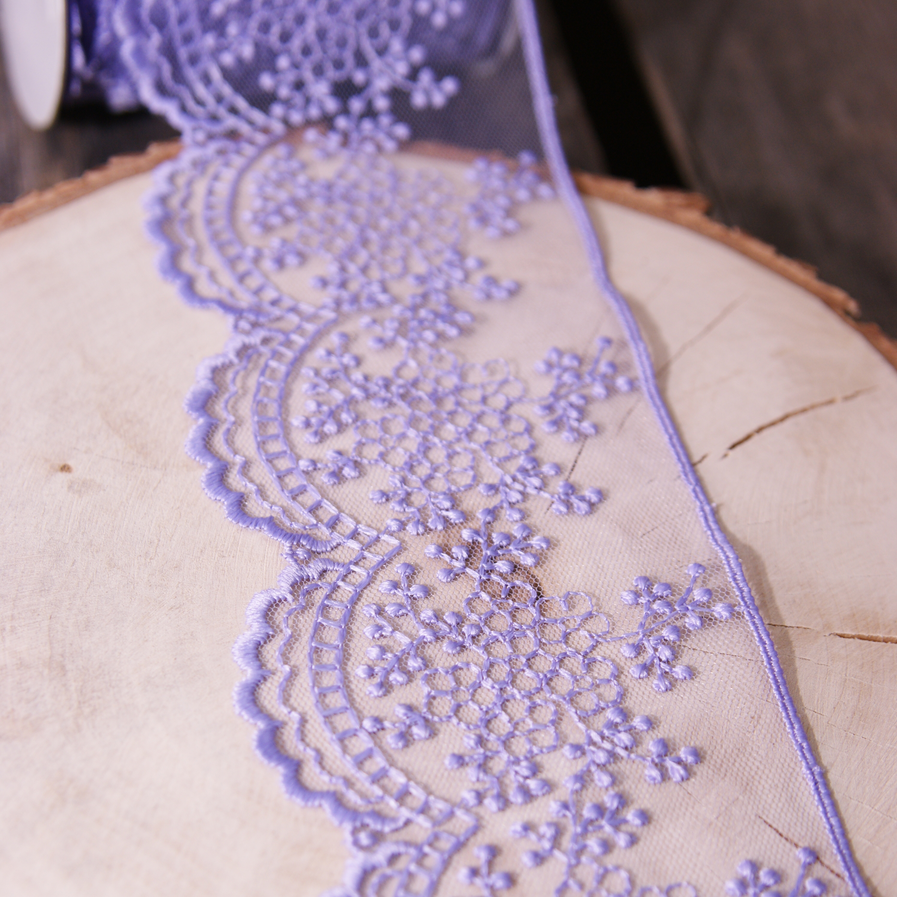 Кружево на сетке 8 см "Цветочки с ягодками", цвет лаванда