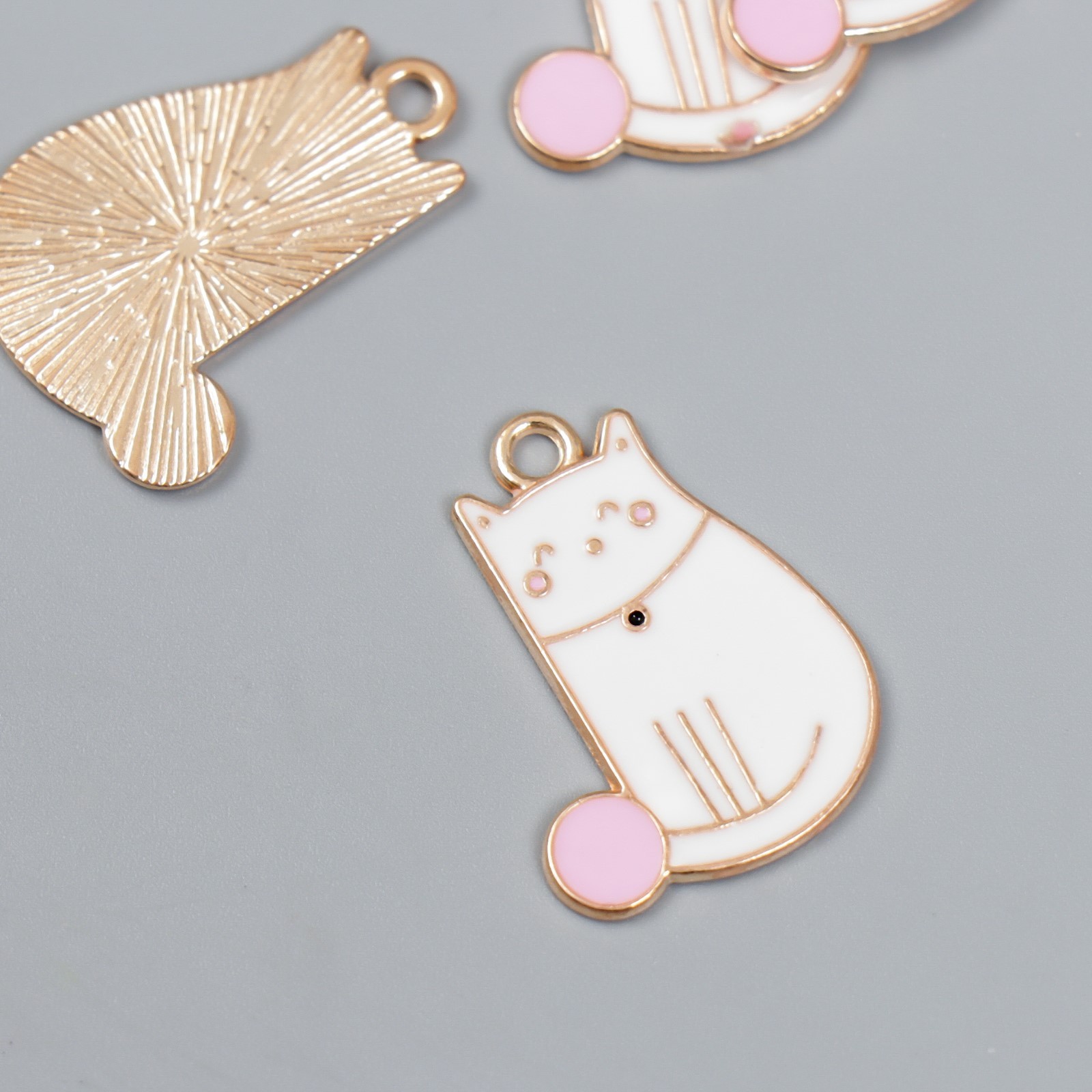 Подвеска металлическая с эмалью "Белый котик с мячиком" (8)