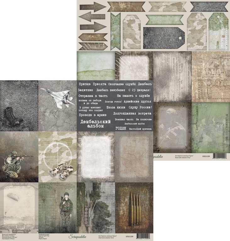Бумага Scrapodelie "Армия" лист Карточки (SCR29)