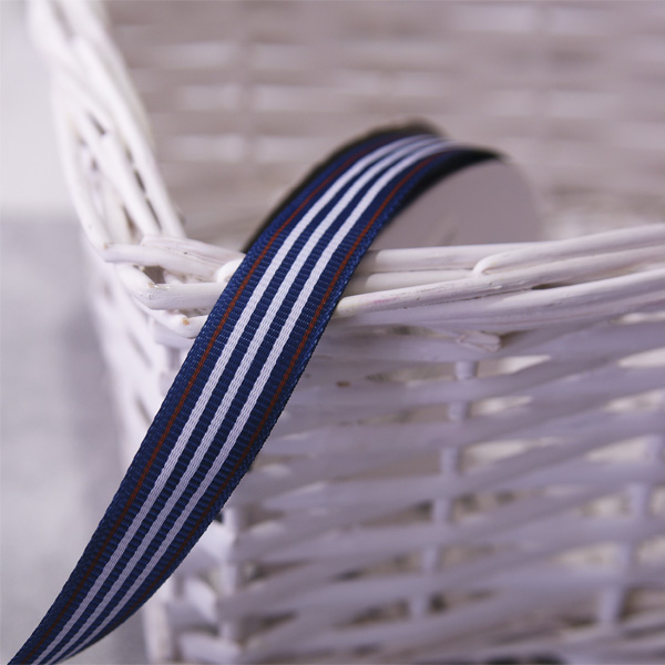 Лента репсовая 15 мм "Полоска", белые полоски на синем